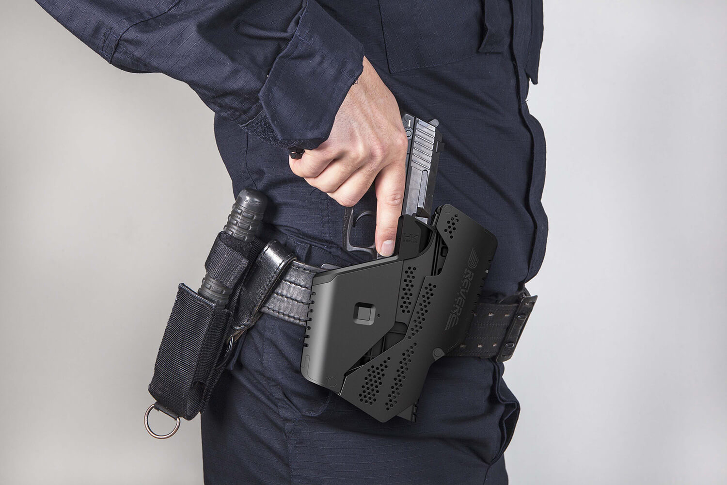 REVERE holsters are for use WITH STANDARD FACTORY MODEL GUNS ONLY. At no time should any gun other than the make and model of the gun for which the REVERE holster is made be used with a REVERE holster. Any attachments, changes or modifications to the frame or external dimensions your gun (including but not limited to: grip adapters, modified aftermarket triggers, trigger shoes, extended or modified hammer spurs, extra-long safety levers, target-type thumb-rest grips, extended side releases, laser sights or special trigger pulls) can make use of your REVERE holster unsafe and increase the risk of a negligent discharge.