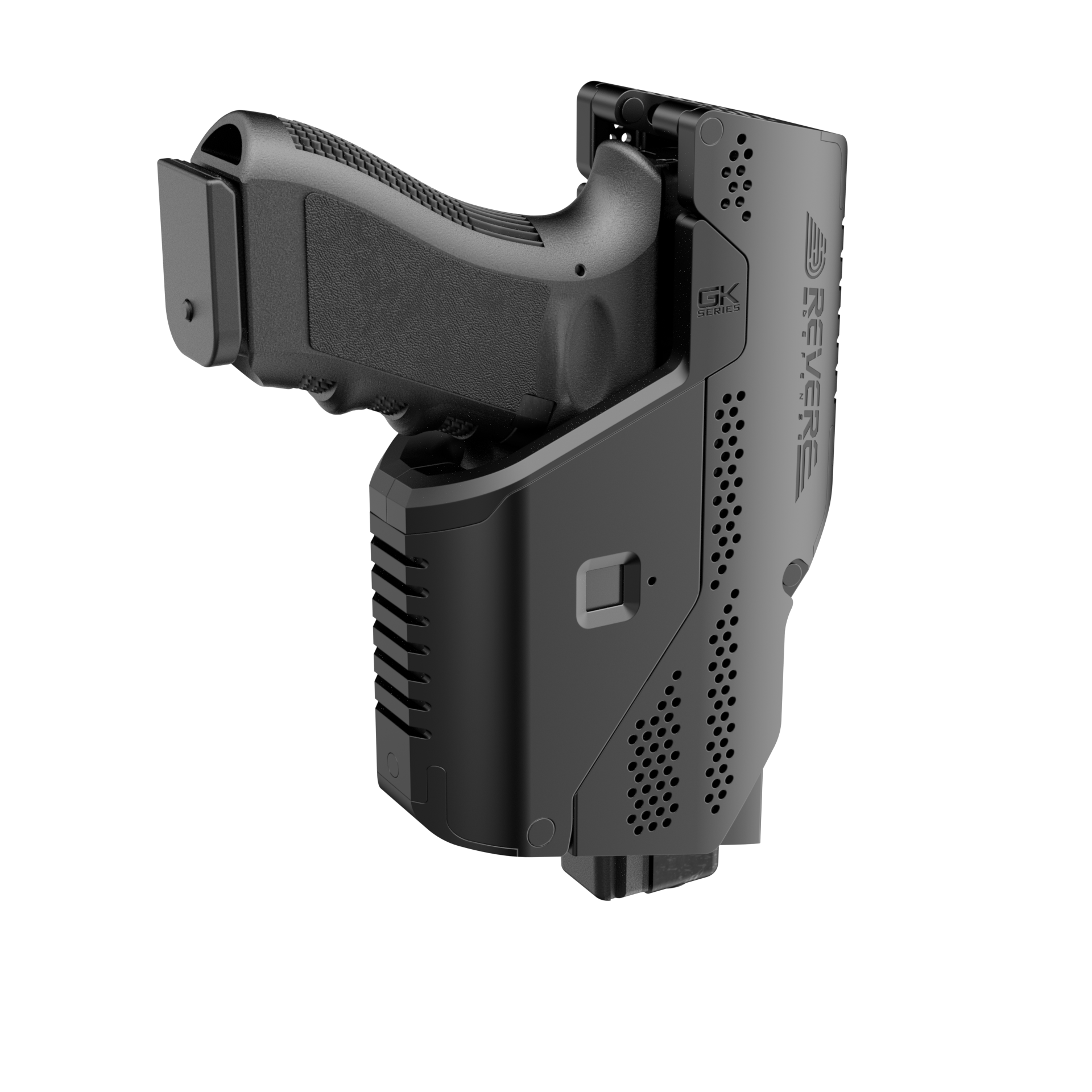 Experience the epitome of firearm safety with the REVERE DEFENSE Biometric Holster, crafted exclusively for Glock Pistols (GK Series). Featuring advanced fingerprint recognition, this holster ensures swift and secure access to your Glock pistol. Tailored precisely for the GK Series, it provides complete protection for vital components. Elevate your carrying experience with REVERE DEFENSE, where cutting-edge technology seamlessly meets the reliability and excellence of Glock firearms. Trust us to redefine the standards of safety and accessibility for Glock enthusiasts.
